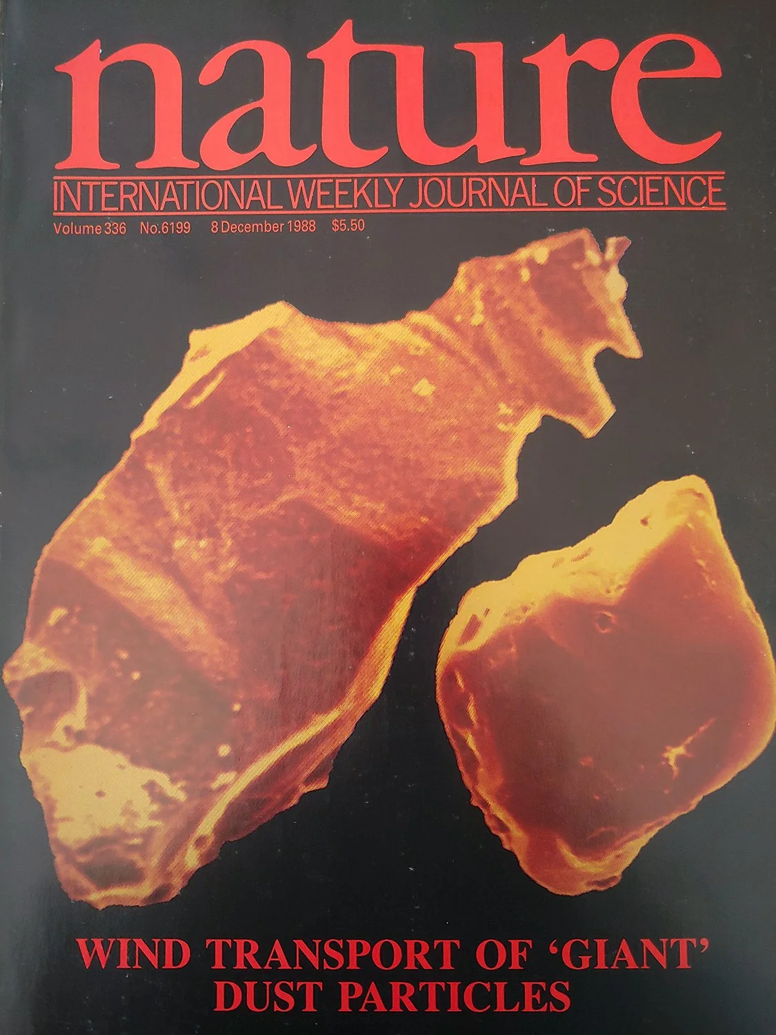 My proudest moment as a microscopist was making the cover of Nature magazine in December of 1988. Nature had just agreed to publish our article on the long range transport of large sand grains from dust storms in the Gobi desert when Peter Betzer suggested I submit a few of my SEM images of the sand grains as a potential cover photo. I was shocked when they selected my image. It also was a great honor to win the Costello Interdisciplinary Engineering award in 2017 which is a bit humorous as I’m not an engineer.