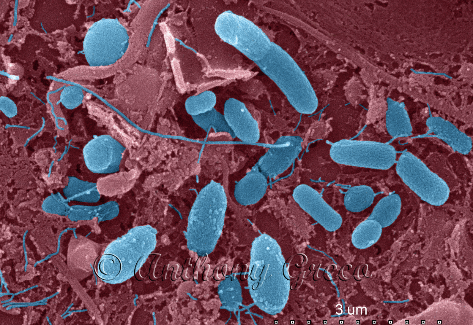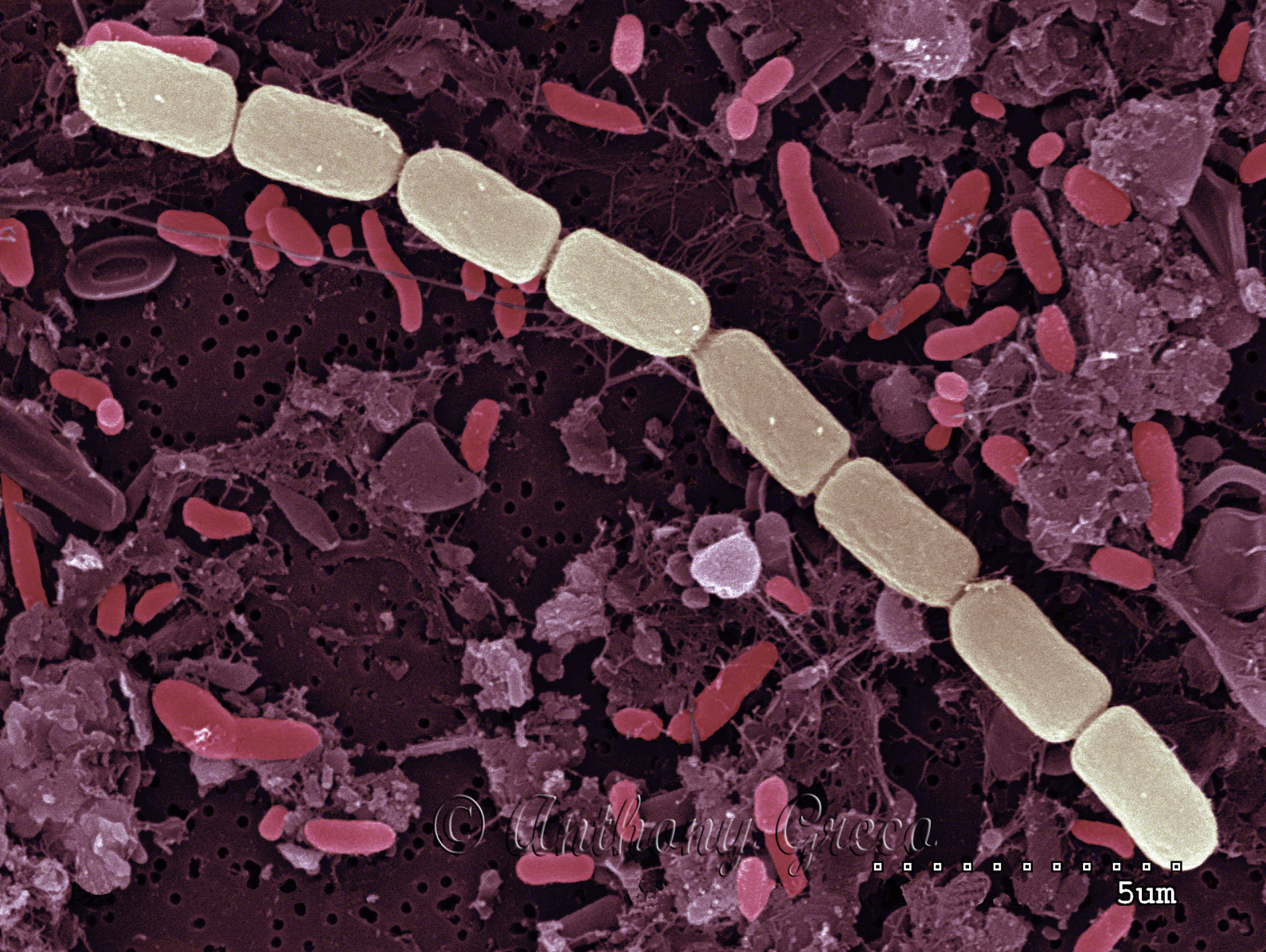 These are single celled microorganisms found throughout the oceans that play a critical role in life on earth. Each drop of seawater (1 milliliter) contains approximately 1 million bacteria. Photosynthetic bacteria such as the cyanobacteria undergo photosynthesis producing a major portion of the oxygen we breathe. They are also vital in the ocean nitrogen cycle as well as carbon fixation helping to recycle nutrients in the ocean. Certain marine bacteria can consume spilled oil and even break down heavy metal pollutants. Pathogenic marine bacteria such as Vibrio can sicken humans that ingest contaminated seafood.